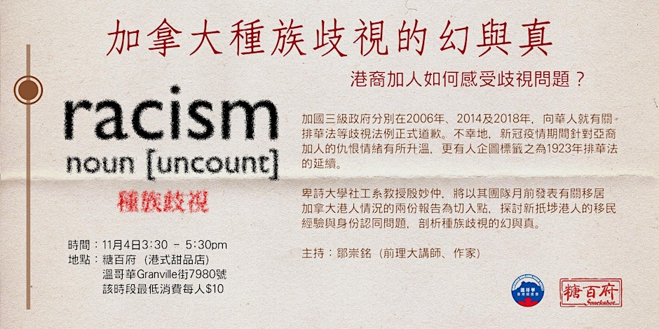HKSI Faculty Associate Dr. Miu Chung Yan to lead a discussion on his survey findings on recent Hong Kong immigrants, especially in relation to their experiences of discrimination and racism (in Cantonese).