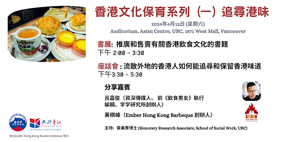 April 13: The UBC Hong Kong Studies Initiative was pleased to be a sponsor of this two-part community event on the culinary flavors of Hong Kong organized by the Vancouver Hong Kong Forum Society.